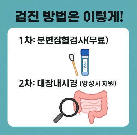 | 비용 | 분변잠혈검사는 무료 / 내시경은 일부 본인 부담 |