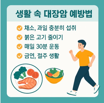 특히 2025년 최신 연구에 따르면, **주 150분 이상의 유산소 운동**은 대장암 발병 위험을 30% 이상 줄인다고 보고되었습니다!