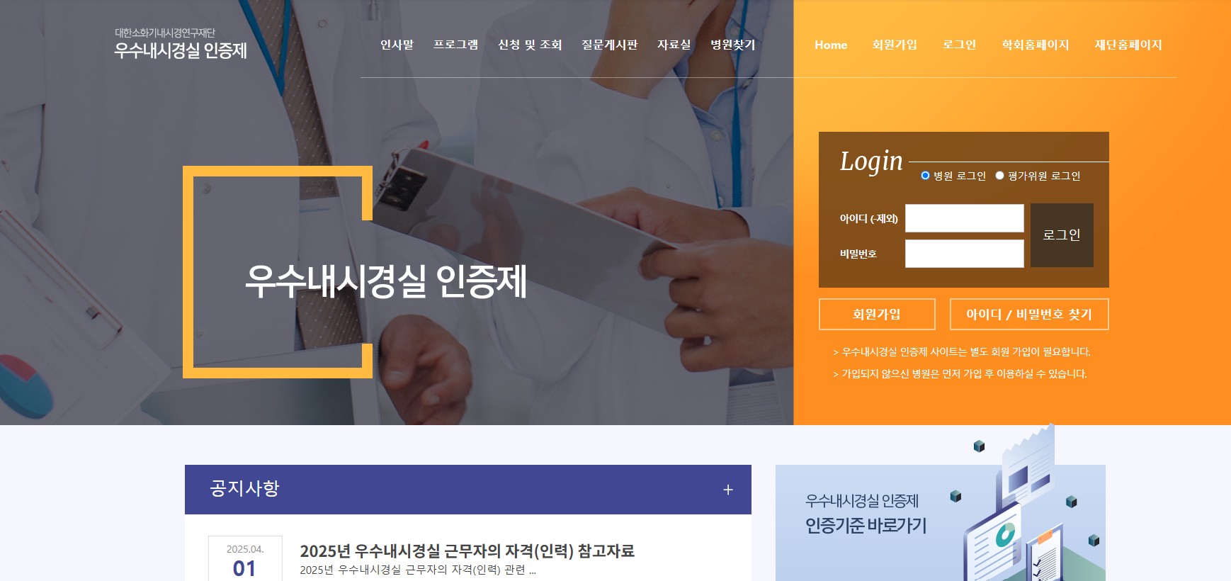 - 우수내시경실 인증 홈페이지(https://www.goodendoscopy.or.kr) 접속